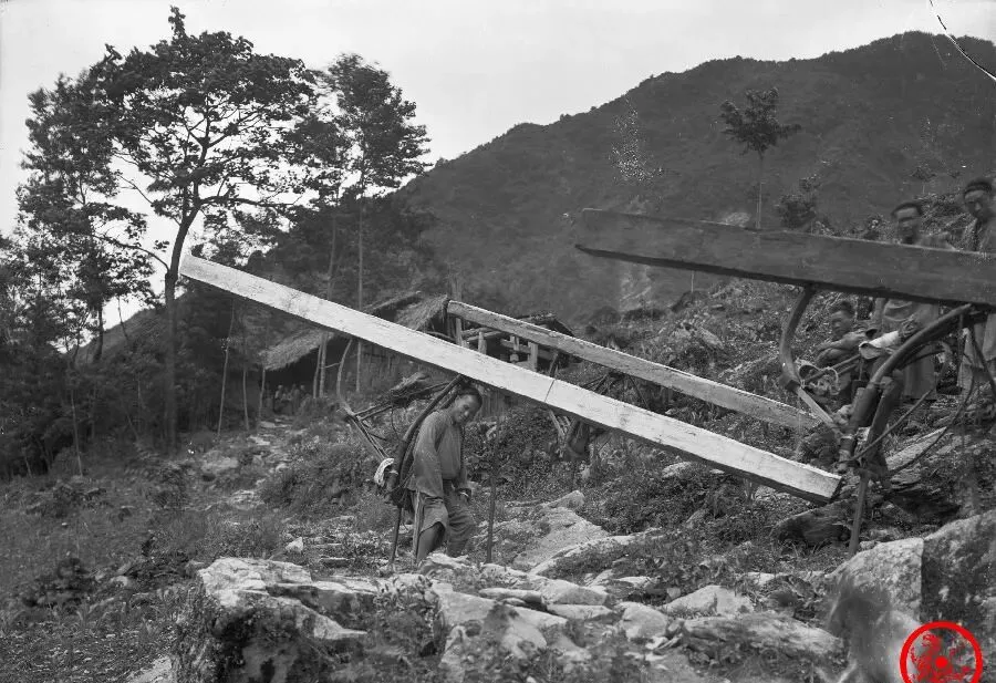 照片中这位爷们儿,身板结实,肩上扛的不是萝卜青菜,是铁杉大梁,这木头,十八尺六、比人还长,山路上全靠腿脚撑着,没人帮你,更没什么车道,得一步一步往下背,汗顺着脸流下脖子,背篓挂稳了腿永远别扭着走,他要歇口气,就找块石头给肩膀“借个力”,爷爷见过这样的工匠,说“那不是凡人能吃下来的活儿”,这活猛,家里有本事的老一辈云里雾里都记着呢。