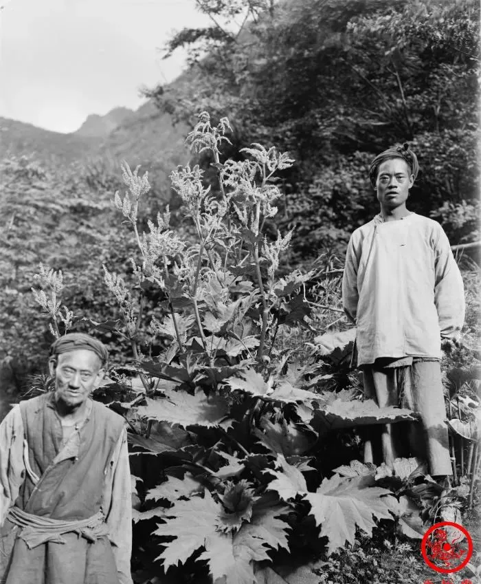 站在山里大黄旁边拍照的两位,这叫药用大黄,根粗叶大,能治泻热、凉血,管用得很,地方老中医指着这“宝”,山沟沟的人家谁要肚子不顺,抓一把根粉泡水喝下去,过两天就有劲多了,大黄长山里,有的村里孩子小时候挖过,说那股苦涩的味儿,抿一嘴齁得不想说话,苦归苦,可药劲就值那个苦。