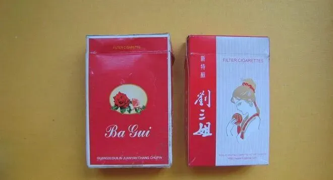 这里是两包红色烟盒,左边的叫八桂,右边细长的写着刘三姐,八桂圆润温顺,刘三姐烟香细柔,广西人聊天,桌上总少不了这俩,爸说以前串门拉家常还流行互送八桂,遇事见刘三姐就是正事场面,有外地亲戚带回家都当宝贝。