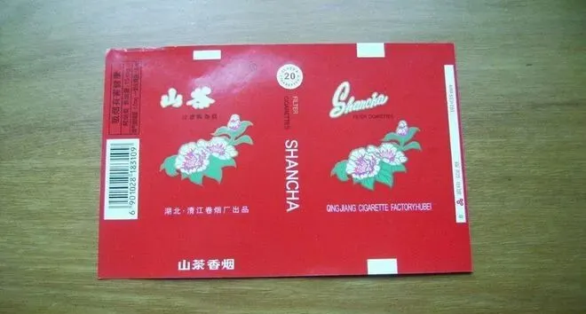 这烟盒名字温柔,山茶,大红底色配两朵花,乡下人好记也耐看,是招待客人时的常客,那会儿村口的小卖部货架上一定有一坨山茶烟,每逢年节,一根烟点传一圈,剩下的烟盒留着装针线,烟还没抽完,孩子们围着大人看热闹。