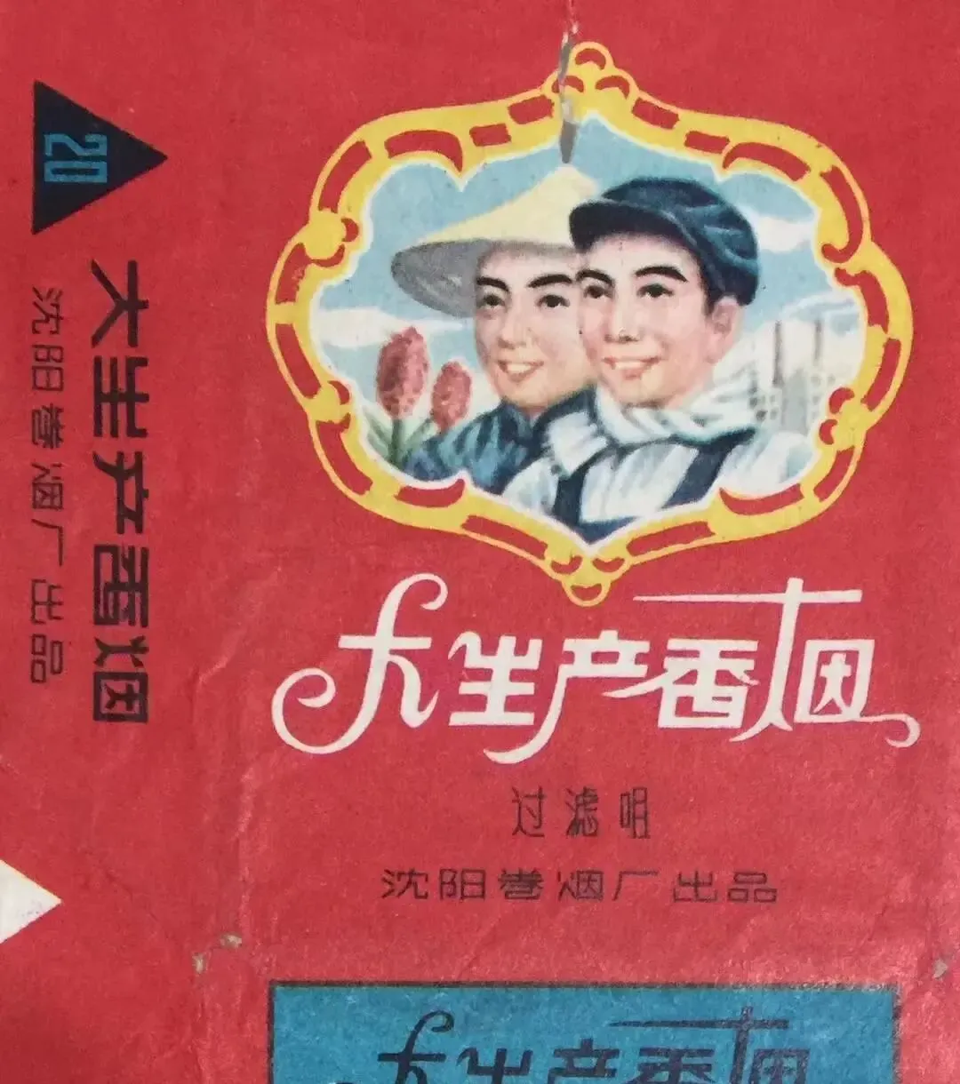 画面上一对穿工作服的青年,帽檐朝外,脸上带笑,大生产这烟味里就带着奋斗时代的感觉,谁家里有男有女下地干活,晚上收工一人发一根,算是犒劳自己了,手头紧的年头,这烟能推进仓库上荣誉榜。
