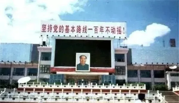 广场正面的强烈记忆就靠这个**“坚持党的基本路线百年不动摇”的大红标语和毛主席像**,老南昌的节奏,全城集会、办活动都挤到这里碰上下雨,大家撑伞站广场中间,鞋子湿,气氛都打不散,真正扎根在一代代人心里。