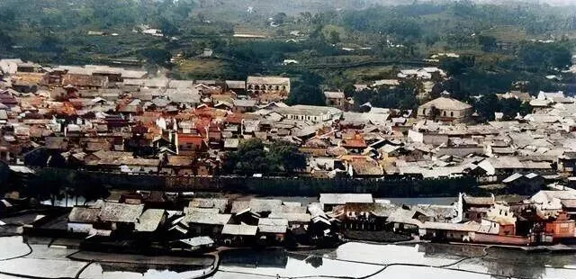 一片片灰瓦房密密麻麻挤在一起,下头田埂和沟渠交错着,村镇和城市像缠在一起,水田里有鸭子游弋,田埂拦得紧紧的家家门前码着柴禾,小伙子光着膀子在田里插秧,日头再大都能熬得住。