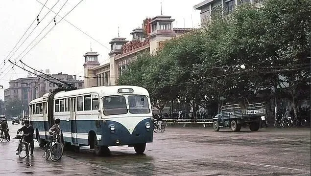 街上那蓝白有轨电车以前走得慢,车头像娃娃脸,两边停满自行车,电线挂天上,滴滴作响,好几站才能坐满一车人有人抱着菜篮跳上车,售票员背着一个大钱袋往前挤,南昌老城区最带劲的细节就是这一辆辆车。