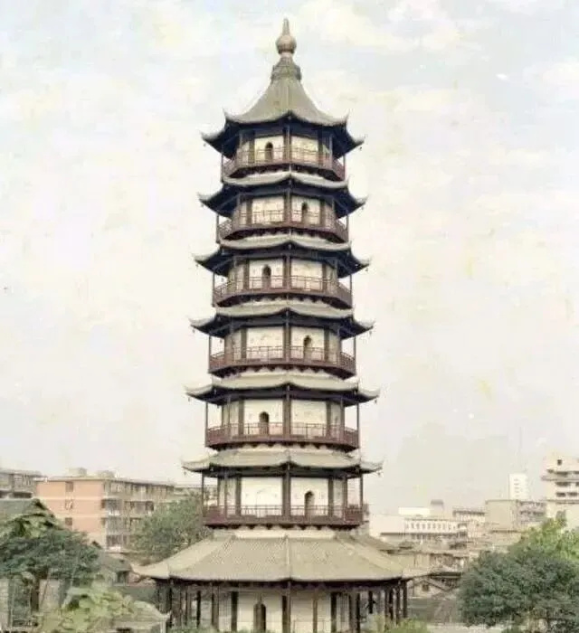 照片里是八角亭塔,七层角高高翘起,木结构每层都有一圈回廊,城里少有的古味傍晚落日照着塔影拉长,偶尔能见到老人站在边上晒太阳,顺手摸摸檐下的青石。