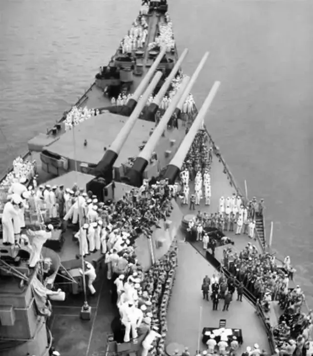 这照片里,甲板上白压压一大片,舰炮像大山横在那儿,制服整齐的人群一层层站开,这就是美国“密苏里”号战列舰,日本投降仪式就选在这里,桌子摆在中央,甲板上站满了中外军官,仪式开始的时刻,连水面都跟着静,天上的云也像收了声。