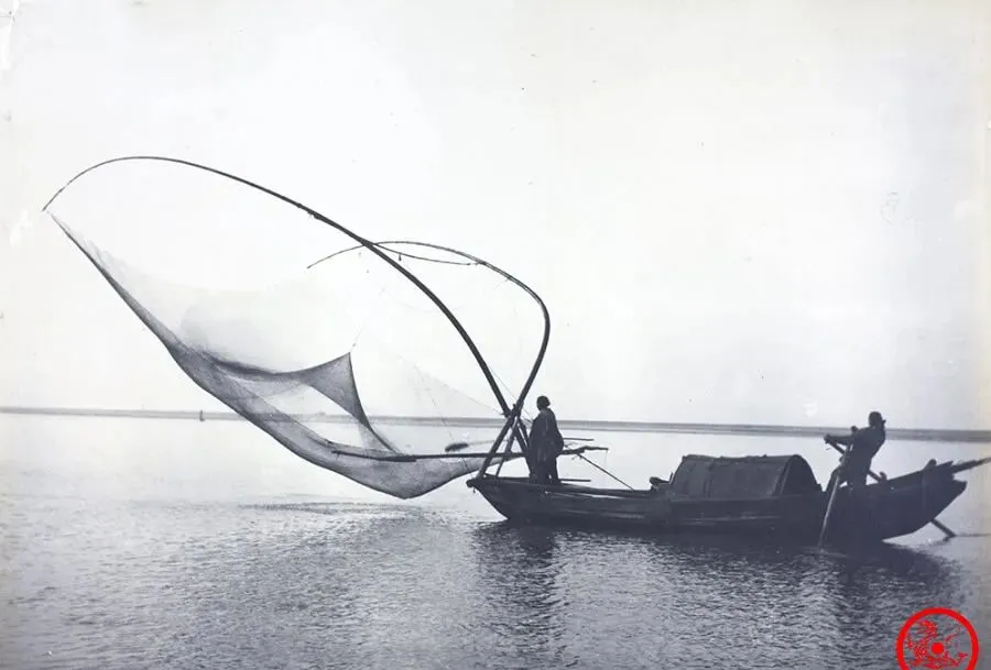 水上人家用的这个家伙叫扳罾,竹篾扎的大方网,四角拴根粗竹竿,扛起来往河面一推出,脚下站稳,不到一分钟能捞起一网,不是扔网撒的,那阵子江南一带都用它,有人家小了一点,青头小伙子也学着使,父亲常说,劳动最怕冒失,罾下去一会儿就拉,么的鱼也得再来一遍,扳罾这东西,省劲不惊扰,一看就是老祖宗传下来的能耐。