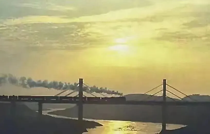 这一张是当年铁路大桥上的火车,背景压着落日,火车拉着长长的烟带穿桥而过,江面被映得一片金黄,小时候家里大人带着我在桥头等火车**,火车一过,空气里全是煤烟和汽笛声,震得心里咚咚跳**,现在城市新桥一座接一座,早没了当年站着遥望的兴奋劲。