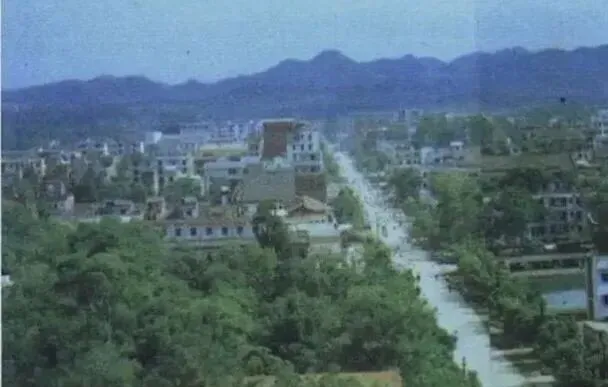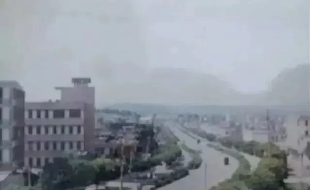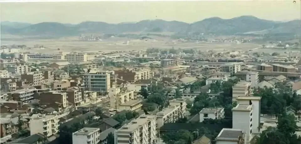图中这片开阔的城区航拍图,在八十年代末那算得上气派,清一色砖瓦房顶,街道两边有细细的柳树,每家每户院子里都摆些自行车和绿皮三轮,那时来宾还没什么高楼,远远地望过去,一片片新房依次铺开,下雨天街道边就能见到水洼,和沙地混成一片,蓝色的屋顶非常显眼,逢年过节,家家户户门外都会摆上盆栽和大红灯笼,天一黑路灯点起来,巷子口总有邻居坐着聊天。