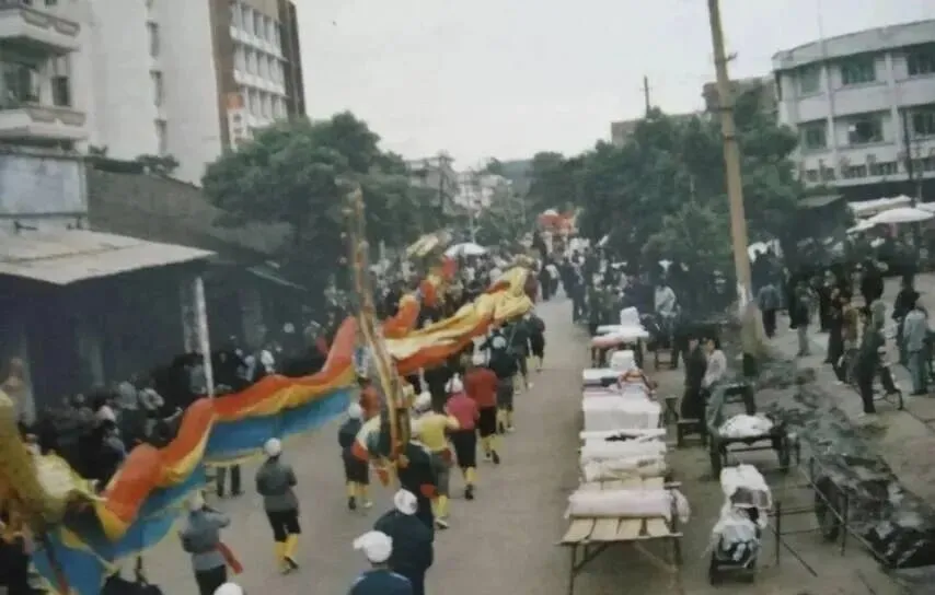 舞龙的队伍在主街、巷口反反复复走着,上头彩龙黄红交错,底下小伙子一个劲敲锣打鼓,街边摊位全搬出来看盛大场面,这种气氛一年只有一次,现在谁还见得到这样街头表演。