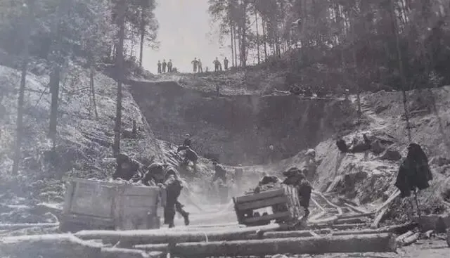 黑白照片这景儿,一根根圆木顺山道滑下,几个人推着木筏,衣服上全是泥,旁边几个大人站着指挥,谁能想到,这堆木头最后变成了城里人的桌椅板凳,小时候站在工地边上远远看着,想象自己是不是也有这样的力气,现在伐木全机械化,那些靠手艺吃饭的师傅,大都老了。