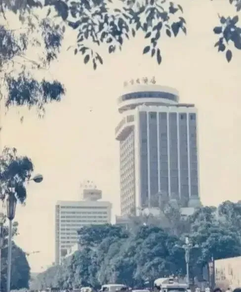 图里那座高高的楼叫广西民族饭店,外墙像用铅笔画出来那样直愣愣的,周围都是低矮楼房,小时候家在五一路,走远点才能看到这栋地标,妈说结婚的请客都觉得在这儿排面十足,现在谁还会特地打卡,不过民族饭店顶上的旋转餐厅,老一辈的人说上去喝个茶就像出了大场面。