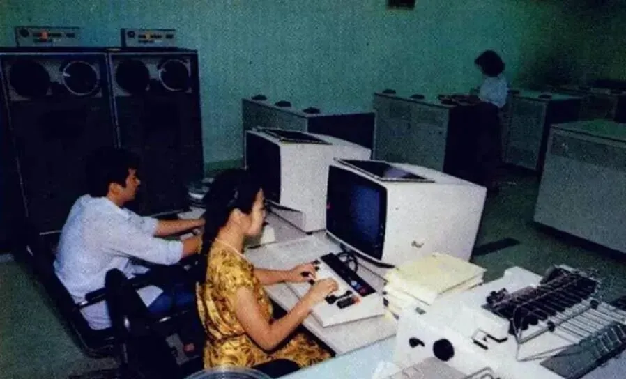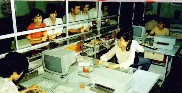 这排电脑放现在小朋友肯定笑掉大牙,那会儿银行、单位配上这种“大块头”显示器,后面一排排是磁带机,敲字还得戴套手指,电脑房里总有风扇吹散热,小孩只敢远远站着看,阿姨们打字时手指飞快敲着机,“咔嗒咔嗒”的响动伴了一整个八十年代。