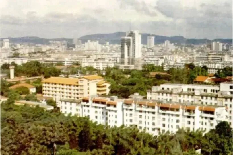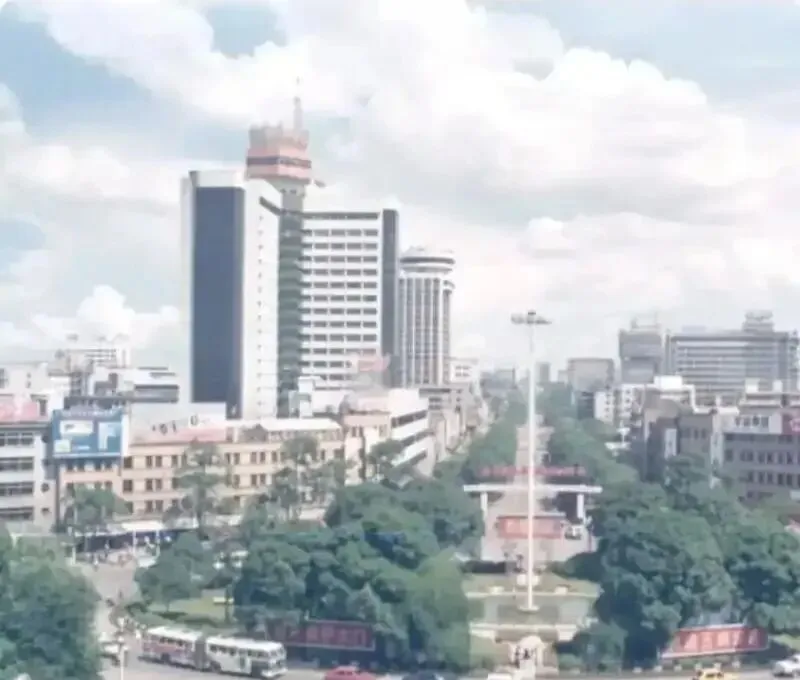 照片上这栋楼当时就是南宁市的地标,看着像块硕大的方盒子,楼顶大招牌特别扎眼,夜里能一直亮着字,楼下有小摊贩扎堆,爸说“晚上卖串串香、糖水粥的小车一字排开,全是香味”,现在的摩天大楼虽高,没了这种人人能抬头认出来的亲切。