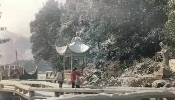 河滨公园下雪那阵,小凉亭边的小路被盖上一层白,说话走路都带着雾气,小孩一脚踩上去留下脚印,回头都能认出是谁,景好看,小道安静,有时候妈妈穿旧毛衣推着小的来吹风,远远就能看到那石桥和凉亭,照片里那个人是不是你自己都能对号入座。