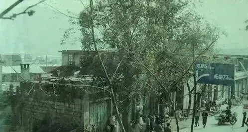 图里的河沿路老街,招牌扔得低低的,店铺密密麻麻,有卖药的、有补鞋的,房顶歪得要塌,小时候跟着家里出来买东西,隔壁理发摊传来剪刀“咔咔”响,修自行车的老爷叔笑眯眯坐门口,车来车往不多,街上的人倒有种自己人熟门熟路的安全感。