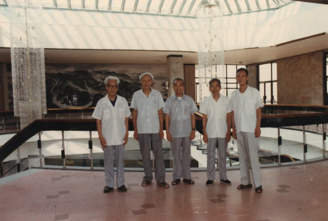 冯缵刚院长在原图书馆(现致知楼二楼)与学校首批获评博导合影,(左起)于道文,浦发,