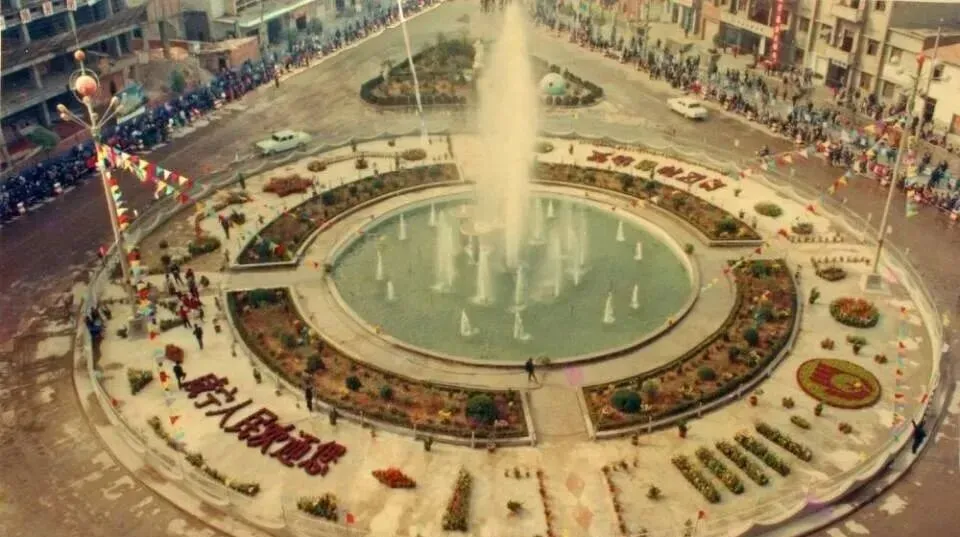 这张是中心花坛,那会儿谁家有照相机,拍出来都要在牌坊前摆下架势,喷泉水柱一冲天,四周种满了花,花坛里绕圈跑了一圈汗就下来了。爸妈有时候领我过来转转,说那时候来逛花坛算是“赶集日子”,热闹得很;每逢节庆,广场五颜六色的彩旗都挂起来,车子、人、声音都打成一锅粥。你要是老城区长大的,肯定在这里站过照。