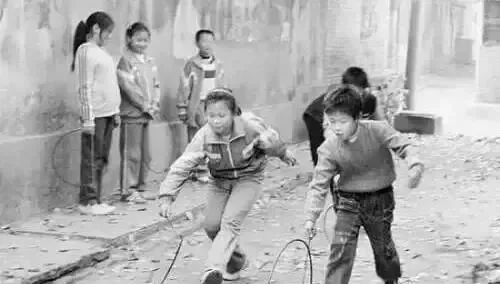 这画面里几个小孩在巷子弄堂追着滚铁环,铁环碰在地上咣咣响,孩子跑得气喘吁吁,身后尘土飞扬。以前啥玩具最亮堂?一根铁丝一个铁圈子就能玩上一下午,碰见大人喊“去做作业”,头一低又钻进小巷没影,童年就是这样黏着马路边和伙伴。