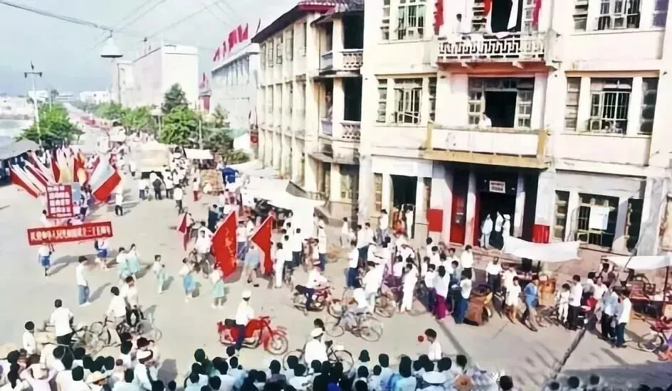 图中那条路,叫化龙商业步行街,八十年代没什么电动摩托,行人推着自行车,边走边聊,马路两旁种着梧桐树,夏天树荫底下摆摊的全是真东西,路宽不拥堵,街面干净少杂乱,有时还能遇见卖糖画的师傅支小桌做动物,拉一大批小孩围观,看着看着就一下午,这样安静又自在的老街现在不多见了。