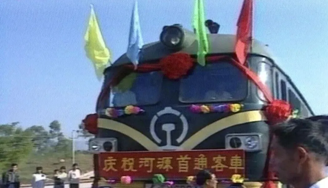 这一张就热闹得很,写着河源首趟火车的黑色机头,披上大红绸,左右一溜彩旗,老城开通火车那天堪比过节,车站又新又亮,爸爸抱着我拍过一张合影,“以后能搭火车出远门”,小孩哪懂,只觉得这头火车太高大,远处是热气,近处是人情。
