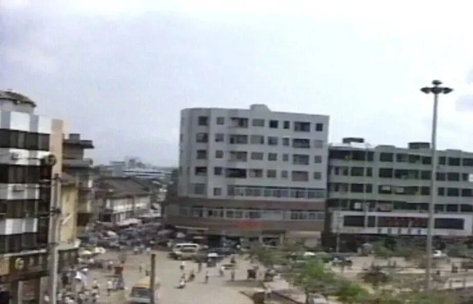 这是河源城区的全景,镜头拉高一看,背后的山影嵌在天里头,白色的楼一排排紧挨着,老城区的烟囱、广播塔都能找到位置,九十年代时城市还没现在扩得开,人都往城中心聚,一大家子周末到高处看过风景,爸爸当时站边上打趣“你们长大后河源可能会变样”,如今回头再看,变化的确比想象快得多。