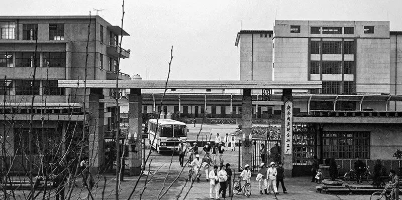 这群学生在常南美味食品厂门口,都是穿着T恤牛仔,夏天校门口树荫下一围一喊,老厂的大铁门贴着牌子,附近小店里卖汽水雪糕,小伙伴商量着下课去哪玩,这样的悠闲劲儿,放到现在早被补课班塞满了。