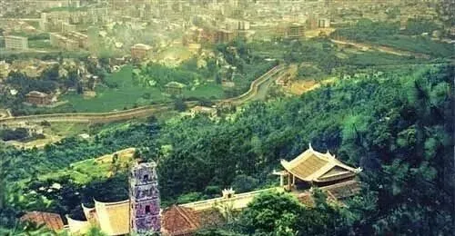 这张爬山远眺的照片是凤凰山公园里的旧景,山腰有座庙宇瓦顶翘起,红墙黄瓦很显眼,往下看就是一摞摞的屋顶和青翠的山林,八十年代去那儿要绕杂草小路,爸爸背着柜子走在前头脚步特快,还会喊一声“小心别滑”,那时看城区还觉得一切崭新,现在凤凰山全是游步道,人来人往,但这样的俯瞰只在记忆和照片里再遇见。