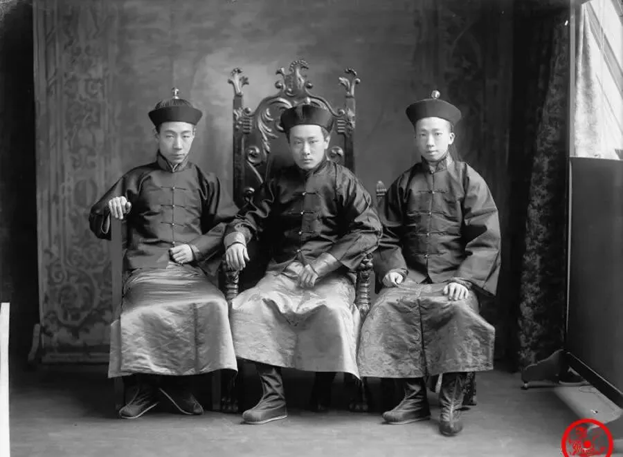 这组照片里,三位少年并排坐在太师椅上,一圈暗纹大靠背,身上清一色圆领袍子,腰间束带打得溜溜直直,左侧那人攥着拳头,表情还挺不服输,正中间那个,怎么看都有点主心骨的样子,最右边年纪小点但神气不弱。小时候翻爷爷的老相册,他总感慨,这宫里出生的小子们,玩的是“规矩”,坐没坐样、站没站样的还真不行,哪像我们胡同口跑野道,正经家门出来的孩子就是不一样。