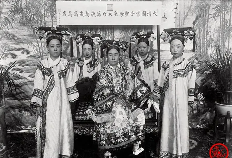 这张人最多,慈禧太后坐中间,旁边一圈格格、太太围着,全副正装上阵,花枝招展,发饰金光灿烂,一个比一个有气场。这一桌摆下去,光是立规矩就够使的,听奶奶说,那些年能在太后左右伺候的姑娘自带几分聪明劲,不只长得俊俏。每年秋天各家都得往宫里送女娃,选进了可算光宗耀祖,剩下的也只能自家操持家务,宫里宫外,差了不止一道门槛。