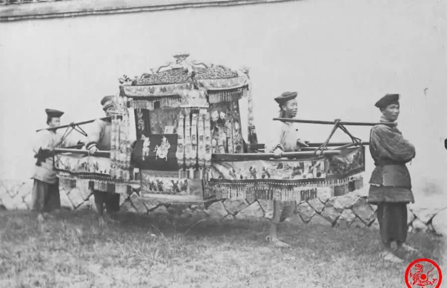 图上这花轿装潢扎实,看着就是嫁娶时的压轴,木头雕栏,穗子流苏挂满,轿身刷得锃亮,假如有彩色,那大红得扎眼,静静停一边,好像正等着新娘子钻进去,这花轿一抬,屋里一帮人哭一帮人笑,出门是顶事,回去得安生过日子,村里哪家有出阁的,小辈老辈都去瞧,奶奶说她出嫁那天轿子也这么大,两侧轿夫明里抬,暗里比劲,彩头是热闹,日子是柴米,轿子现在博物馆能见着,乡下偶尔婚礼也还请人抬。