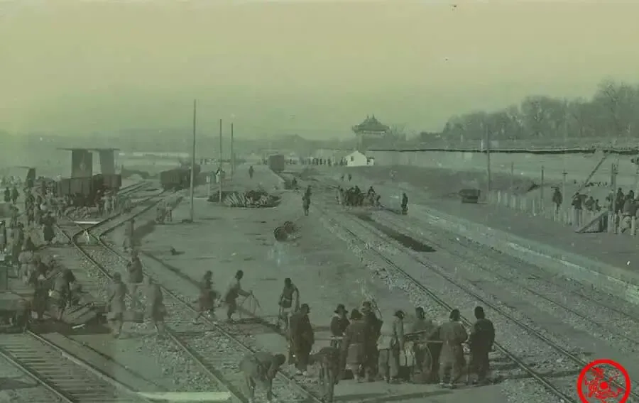 这地方最特别,是天坛火车站的建设现场,铁轨纵横交错,人影忙忙碌碌,远处隐约是当年八国联军扒开城墙修进来的铁路,英军为了拉物资方便,把砖墙拆了口子,清廷后头愣是给拆了,火车头没剩几天风光,就这样消失无踪。