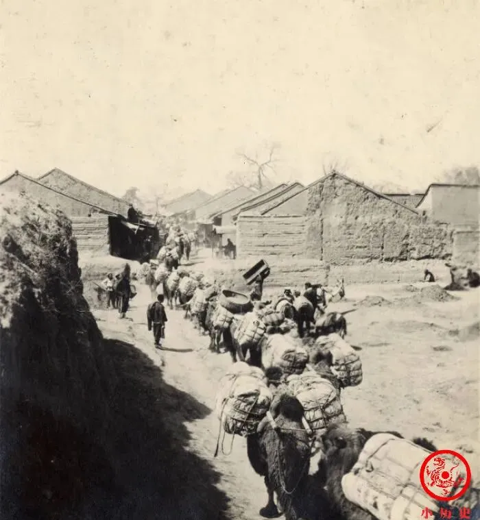 这拉长影子的队伍叫驼队,一头头骆驼驮满二百多斤货,沿黄土路慢慢往前磕,有人边走边甩鞭子催着。爷爷年轻那阵在陕西也见过,说路上屁股后头总飘一堆尘土,天晴了一路看不见人眼,就是靠这群毛驼带货去城里,换几袋粉面回来。
