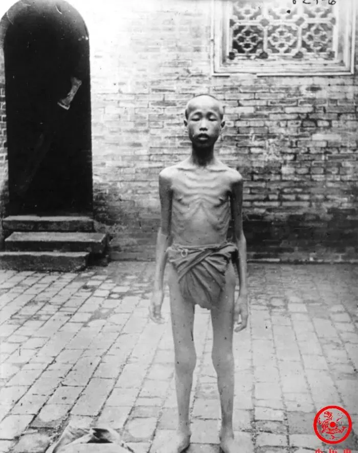 这个孩子一站就是乞丐,肋巴骨一根根,全身瘦得只剩皮包骨,双目紧闭,腰间裹一块布。那年月灾荒多,粮难吃,娃娃一饿顶三天,没人伸手管,街面上这样的瘦身影常见。