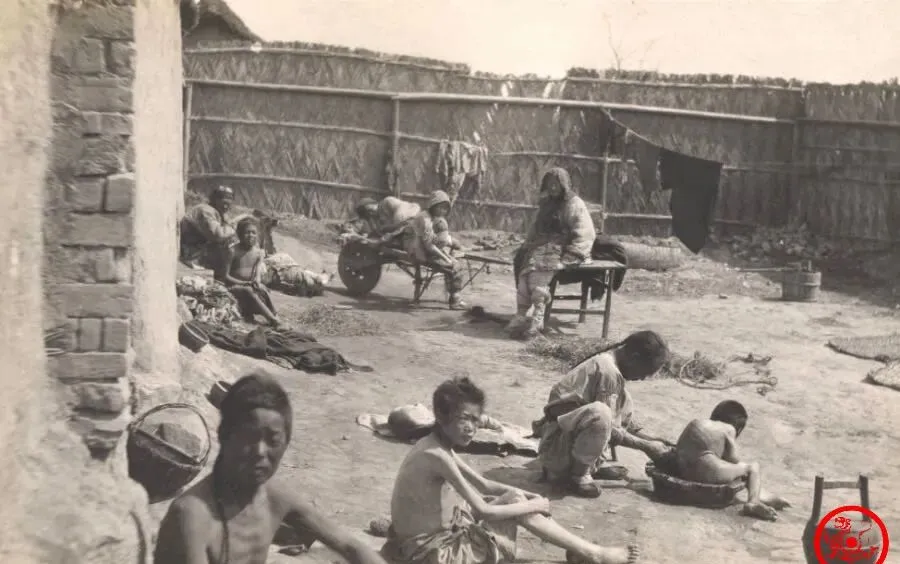 一院子的人,各自找地儿歇脚,有的坐板凳,有的靠着土墙扒拉衣服,孩子围成一群互相打闹。老照片没什么色彩,却能看出每双眼里都是日子奔头,院子里那块阴影,好像隔开了外面的苦和里面的一口饭。