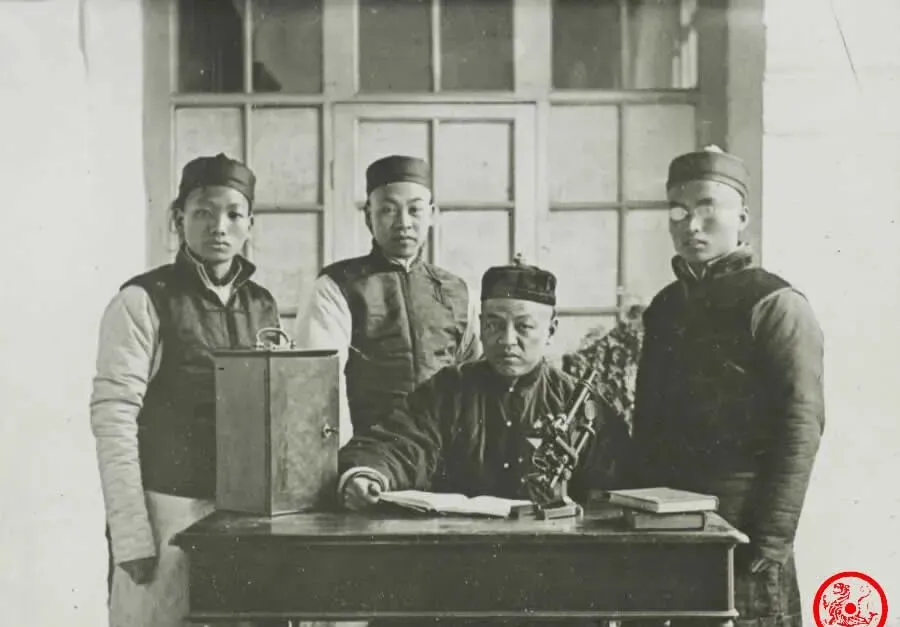 桌前坐一人,周围站仨,说是医生其实有点跟学徒合照差不离,桌上一个铁盒还有本厚笔记,后头窗玻璃擦得半明不暗,一人一脸认真劲,不管水平咋样,说到底是那会家门口的主心骨。