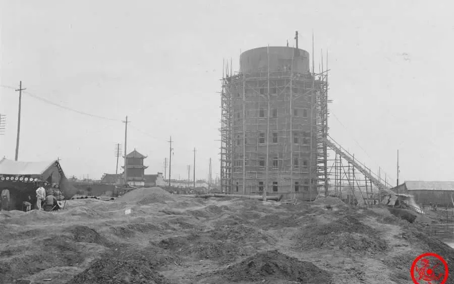 宗关那地界的水塔一眼望去还光秃秃的,外层搭满了木头脚手架,地下泥土扒拉得乱七八糟,站几个人,一看就是施工的架势。