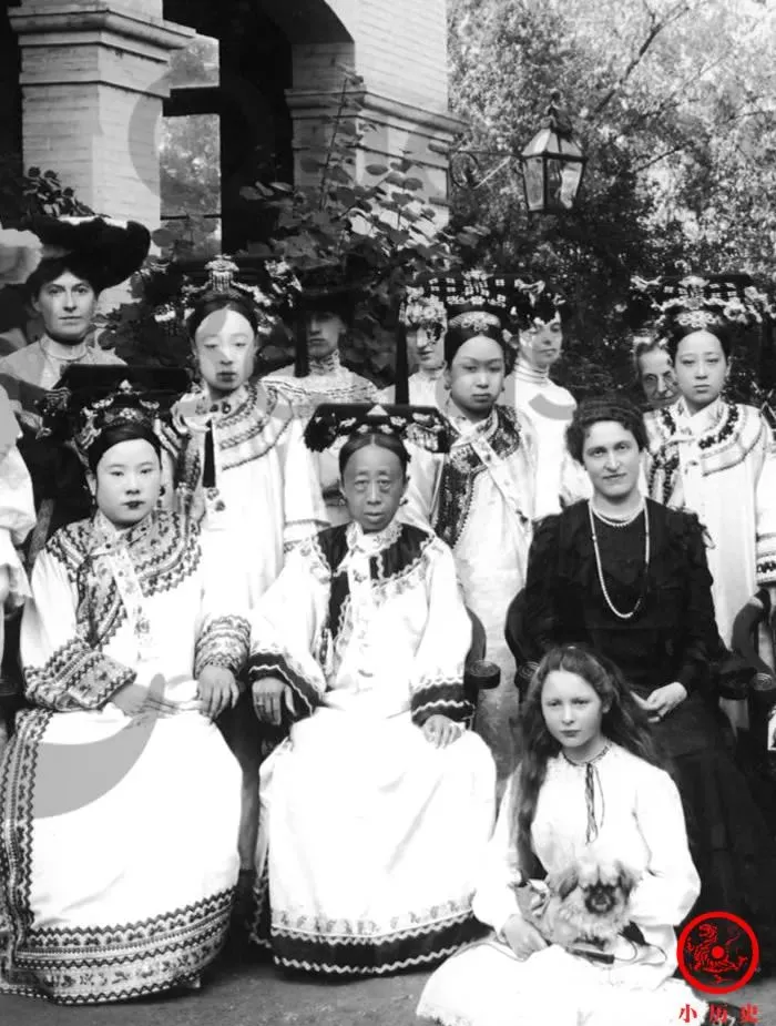 那会儿从宫里到西洋来的夫人一起合影,算十分稀罕的事,气质截然不同,但都坐得端正,母亲以前夸过清宫女人的头饰能压住全场,这么一看确实没说错。