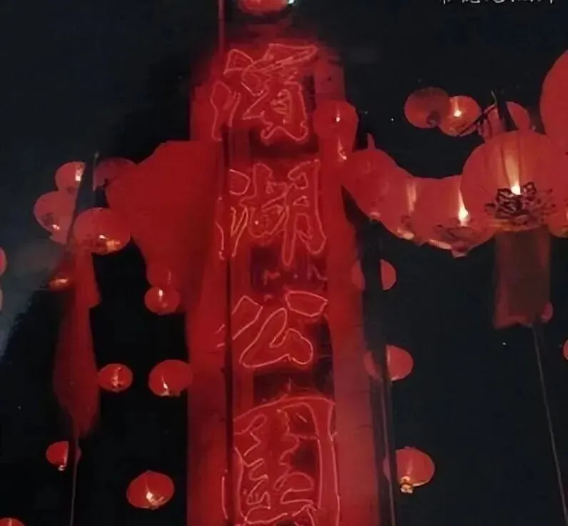 这个红色灯笼掩映下的招牌,就挂着“滨湖公园”四个大字,小时候谁家孩子没拉着大人去过这个公园,夜里一到节日,红灯笼一排排挂起来,正门外一片人头攒动,卖玩具摊子、捏糖人的,看灯的孩子一手拽糖葫芦一手提小灯笼,踩着父母的影子,那氛围就跟年三十有一拼,以前的公园没现在花哨,照样玩得不肯回家。