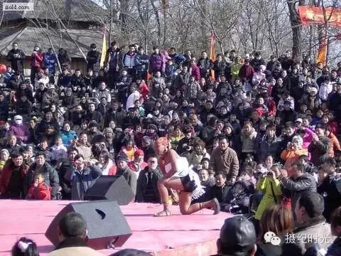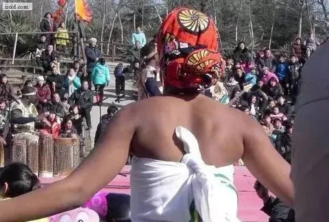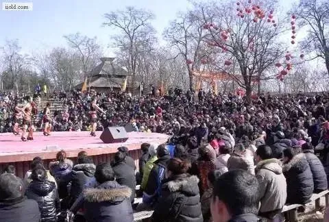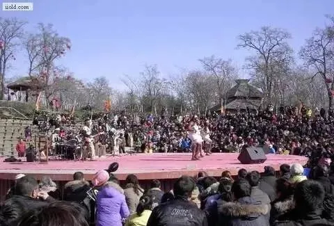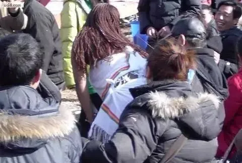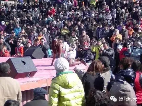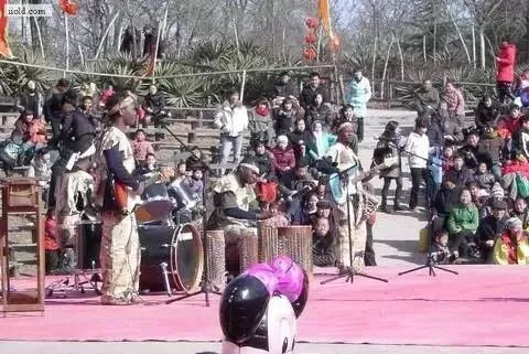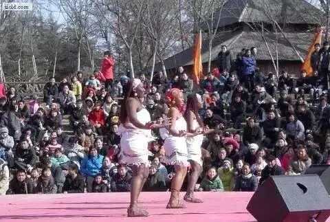 冬天的森林公园里,黑人在表演,围观的群众很多。这些从非洲来的人,穿那么少,肯定很冷了。