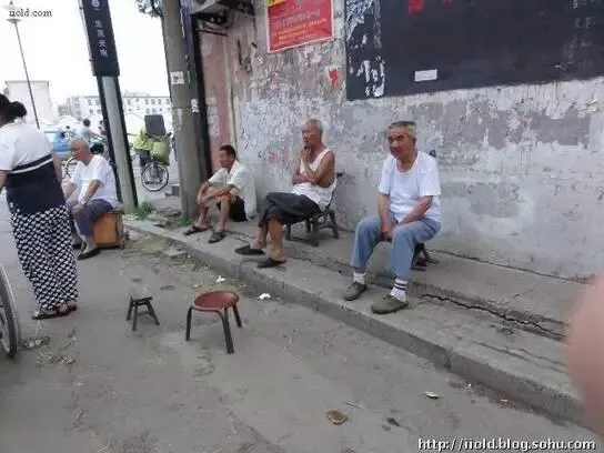 商业大院街口,老人坐在板凳上乘凉。
