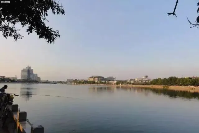 包公湖畔,有人在悠闲地钓着鱼。小时候曾经围着湖晨跑。初中时,学校还在包公湖举行过冬季越野长跑比赛。现在看来,包公湖也不是很大。那时候,总觉得跑上一圈不是一件容易的事情。