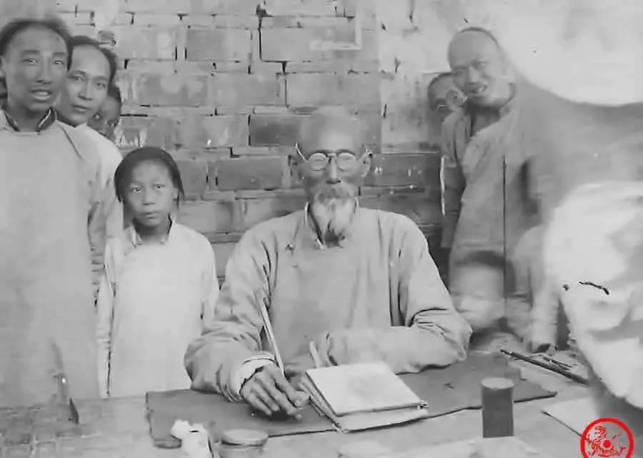 砖墙底下摆一凳,年头带点倦气的老先生端坐一角,桌上两瓶墨水几本账本,手里捏个小毛笔,旁边围仨娃瞧得有滋有味,这种干活的叫代写书信,给人写写诉状借条情书家信,字能认会写就能吃口饭,小时候跟奶奶上街,门口老坐着个人,桌上摊了纸和砚台,每次收了钱都仔细点两遍,看似不起眼,那会儿谁家都得跟知识打交道,总归得指望这些手艺人,把日子理明白。