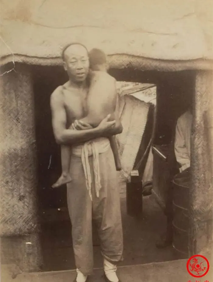 图中正中抱着孩子的男人,赤膊上阵,腰间围着一根布带,说不用多说,衣裳都省了,孩子小屁股光溜溜,脑袋埋进大人怀里,怎么都不肯抬,没谁觉得新鲜,房后糊的那层篾席,冬夏都挡不住风,茅草顶子歪歪斜斜,屋里头黑黢黢的,看架势也是赶巧了才拍下这张,小时候在老家见过,穷日子里大人不怪孩子没衣穿,能遮雨挡风的就算窝,奶奶就爱念叨“那年月饭都顾不上,哪还讲究啥形象”,从照片里看看,一家人的精气神都死死握在手里,不服输也得熬着。