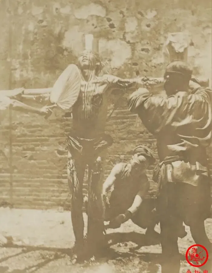 照片里这个人,被粗布缠身,绑在木杆上,脖子和手挽着绳,四周站的人也都木着脸,空气压得结实,没有一点动静,看着吓人,不用问就是传说里的凌迟,千刀万剐的罪罚,晚清还能留到那时,爷爷讲过这刑有多狠,“不是一般人能看的,见过一次做噩梦都不敢提”,墙上斑驳的痕迹像是故意添上的冷厉,这种场面,搁现在无人敢想,以前人命短钱难挣,遇上这档子事,只能低头。