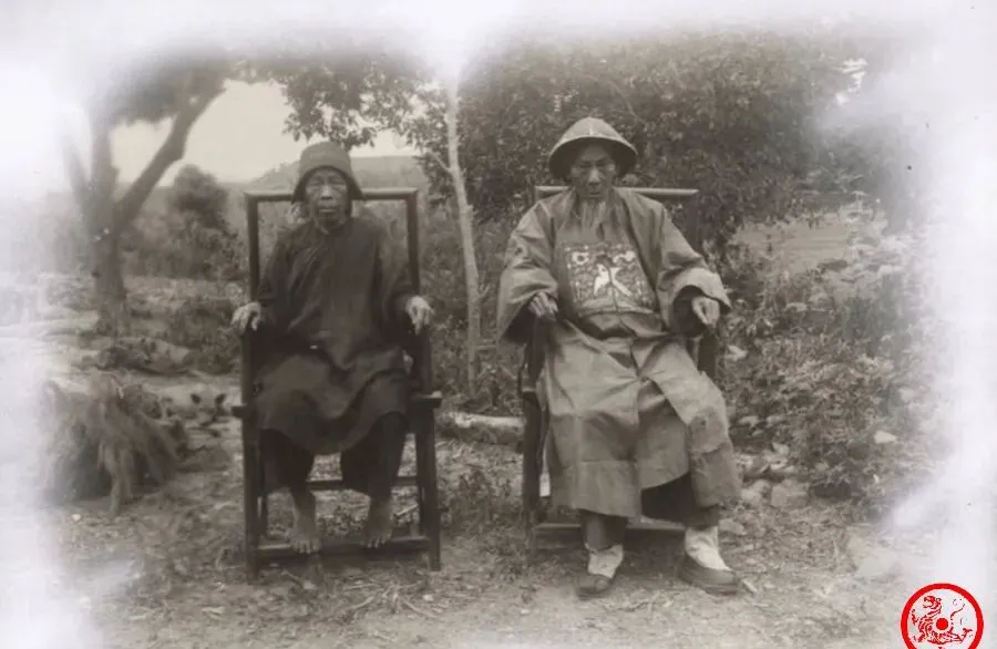 边上的这对老人,男的身上穿着补服,领口袖口早被洗出亮儿来,底边磨破了都舍不得扔,一看就知道是做过小差事的,领着微薄俸钱就这模样,女的更冷清,衣服素,脚下空空荡荡,连双草鞋都没捞着穿,那年月,一个官妻因贫赤脚走路,连最基本的体面都顾不上,老太太张嘴总自嘲“穿不穿鞋都一样,地还是地”,现在讲究生活品质,想起他们只剩叹气。