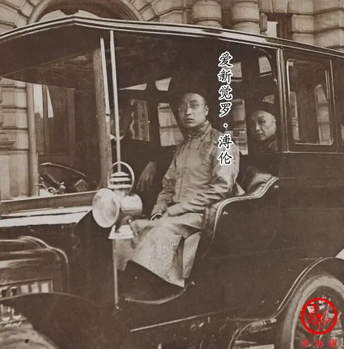 这个穿官服坐在汽车上的人叫贝子溥伦,那时候洋车刚进中国,能坐上这么一台铁皮大轿子的,家底可不是一般,溥伦当年去美国开过眼界,回来后就坐上了洋气新车,连带皇室里头的人都新鲜,家里有长辈说,看见汽车路过胡同口,大家都围过去瞧,新玩意儿吓得马都不敢往前走。