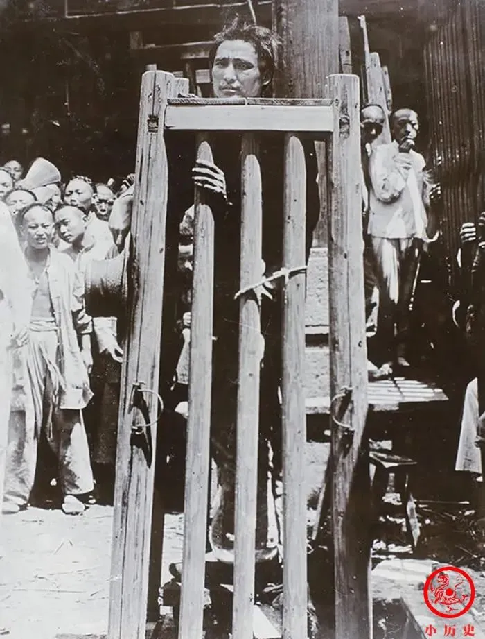 这个人套着的叫“大木枷”,古代犯事了就让你戴着被人围着看,木头厚重,脖子一进就抬不起头,后脑勺出汗也擦不了,场面上人多,谁都看看热闹,谁也不伸手帮一把,有孩子在旁边悄悄拉着娘的手问,娘只说记住别学坏,人前丢人可比挨打难受多了,这种示众,别人是看个新鲜,当事人怕是一辈子忘不了。