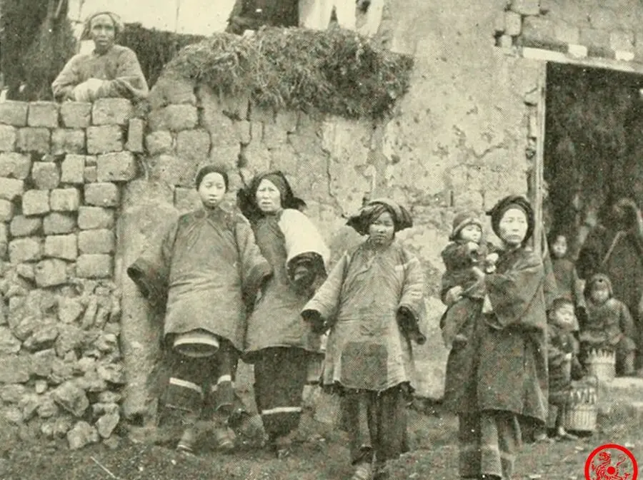 照片里一群女人扎堆站在夯土墙前头,穿的衣服肥大厚实,袖口裤脚都宽松没个样式,墙上还攀着杂草,土坯糙得能掉灰,孩子们在门口、墙根沿边转,屋里露个头,外头抄着手,让人一下觉得冬天风吹得凉飕飕,她们脸上没什么表情,就是站着,偶尔一两个怀里还拢着小孩,周围都是一股子家常气,家里要是谁从窗口往外瞧,大概率就是看有没有人来串门,那时女人们的话不多,手上的活计不停,张罗孩子、顾着柴米油盐,每天都在这些土墙旧屋子间打转。