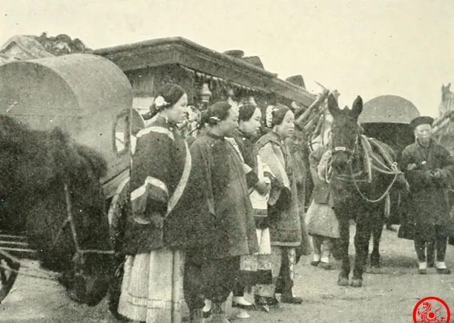 这排队伍旁边停着两辆老式车厢,衣衫整齐的女人们围着马和车站定了,用的大都是大布包头、宽袖棉衣,后头马队等着出发,那会儿赶集办事,出村就是大阵仗,女人们悄悄话一阵,手里攥着点小包裹,背后的车厢里才放的下全家的东西,路远慢慢走不着急,马蹄声、车轮声混着巷口孩子的叫唤,熟人路过总得寒暄几句,家里老人说,那时候赶一次集,得当成过节安排,鞋子擦得锃亮,还得提早一天把包袱备好,出门前一群人叮嘱个没完。